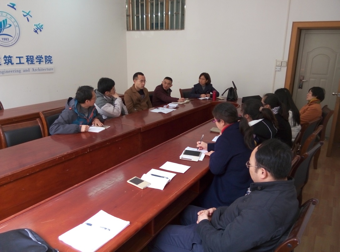 会议主要论题是土木工程专业认证、2017届工民建专业毕业生实习、毕业设计等工作。会议首先传达了专业认证工作的最新情况,针对自评报告索引的完善、课程材料、课程设计及毕业设计等归档资料的核查进行了相应工作布置。随后,对于毕业设计工作开展及要求也进行了再次强调及相应安排。最后,赵军、王磊副院长对于教研室本学期的工作开展提出了具体指导意见。