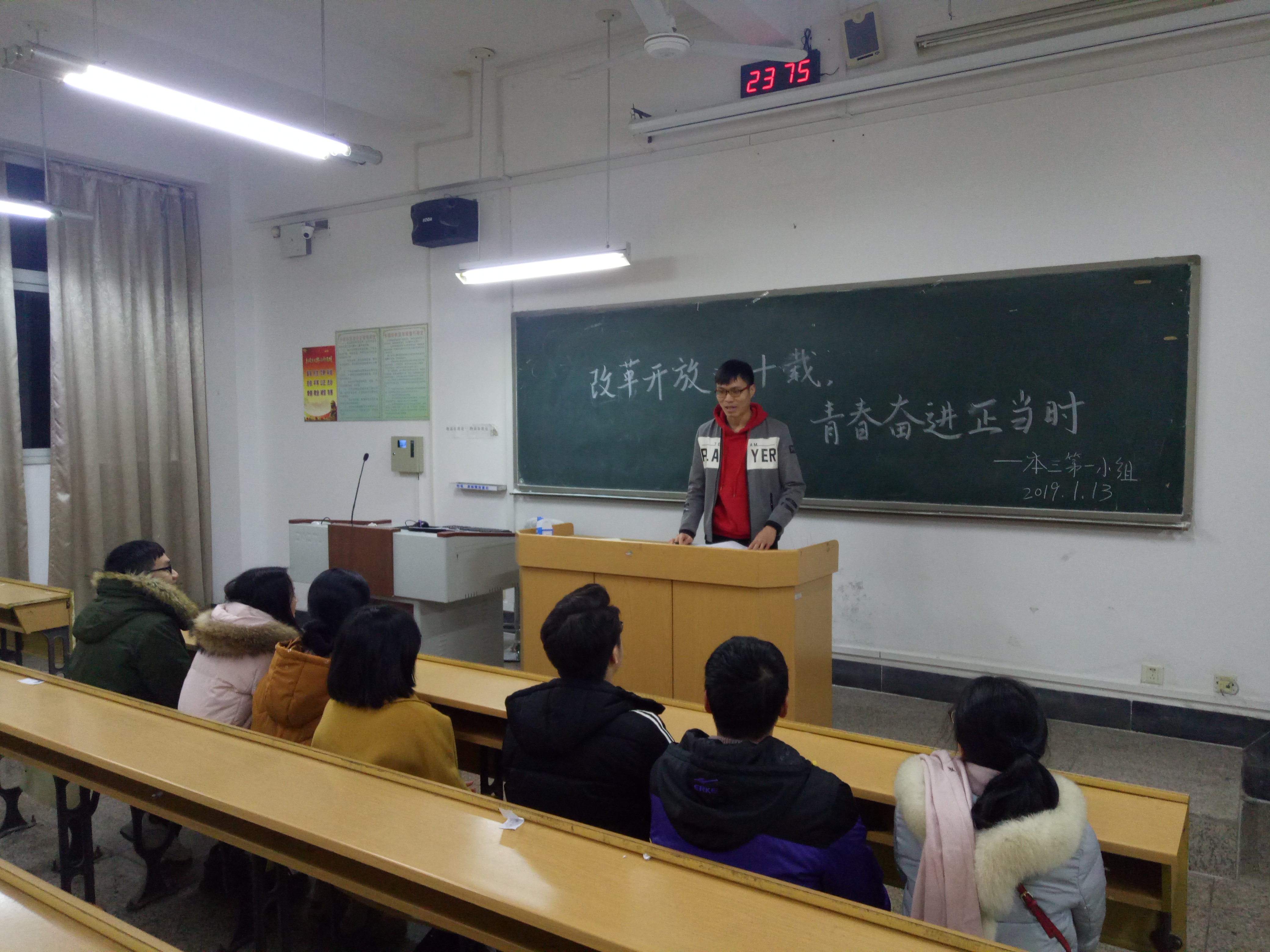 2018年是改革开放40周年,走过这漫长而又短暂的40年,中国发生了举世瞩目及翻天覆地的变化。正值青春年少的大学生党员,展望未来我们也激情满怀,为更好地引导党员同志充分认识改革开放的重大意义和伟大成就,从中汲取改革的激情和发展的力量,明确新时代肩负的责任,2019年1月13日本三党支部第一小组组织开展了“改革开放四十载,青春奋进正当时”专题学习会议,本次会议由组长甘昌森主持。
