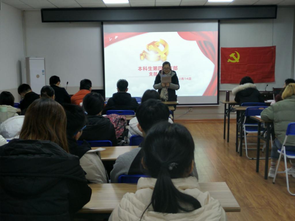 2018年12月14日,学院学生第四党支部于4204召开预备党员接收大会,会议由党支部书记龙奕桦同志主持,党支部全体党员同志和发展对象参与此次议会。