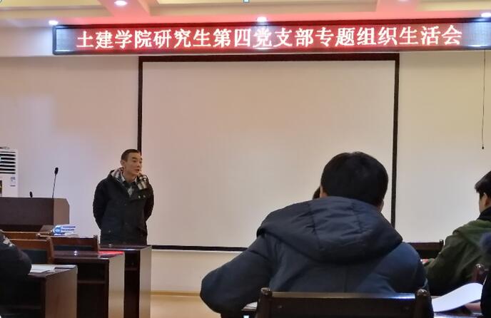 1月15日,学院研究生第四党支部在教四楼4204召开了2018年度专题组织生活会。会议由研究生第四党支部书记高鑫主持,学院副院长赵军老师出席指导生活会。