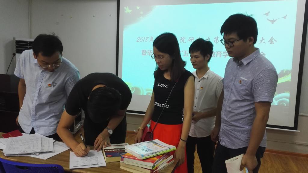 2018年6月7日上午,学院研究生第五党支部在教四楼4203召开了预备党员转正大会以及“五个一”教育活动启动大会。