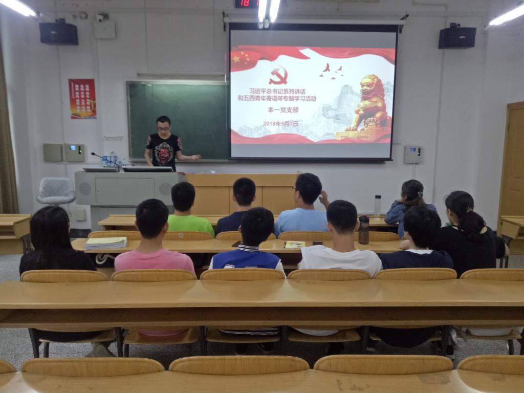 2018年5月7日,本科生第一党支部在9218召开了党支部大会,会议主要内容为习近平总书记五四青年寄语和在纪念马克思诞辰200周年大会上的讲话专题学习,党支部全体同学出席会议。