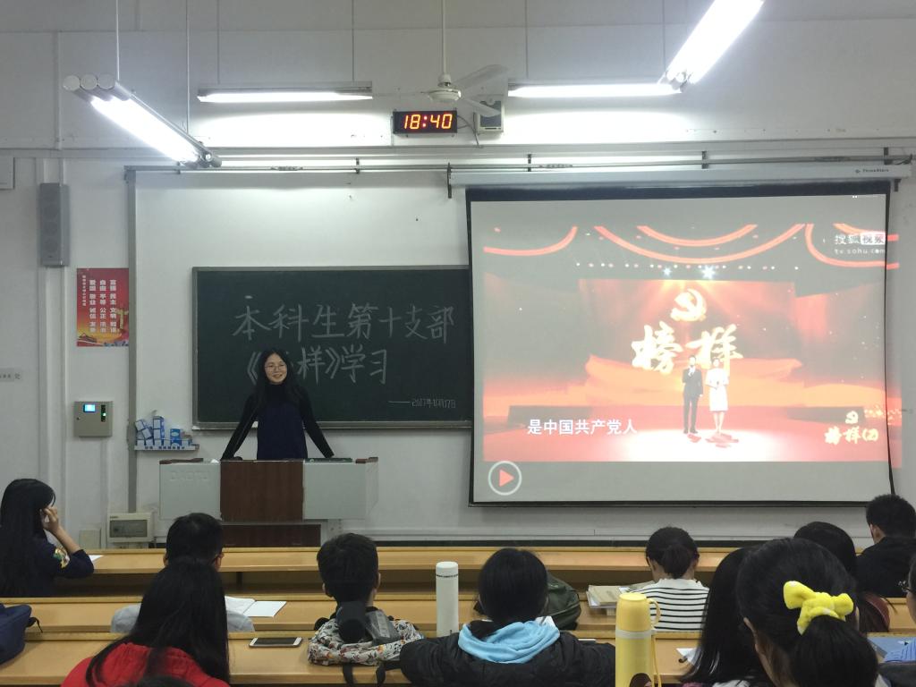 10月17日下午,为了深入推进学院关于“两学一做”学习教育工作,本科生第十党支部以“向榜样看齐,做合格党员”为学习主线,组织全体党员观看《榜样》专题节目,开展专题学习教育会。