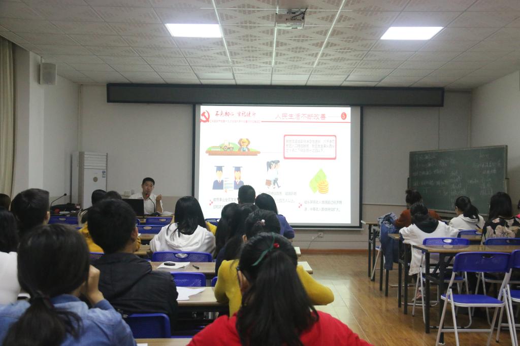 为了更加了解党的十九大在政治上、理论上和实际上取得的一系列重要成果,切实地学懂弄通做实党的十九大精神,努力在新时代开启新征程续写新篇章。11月8日下午,学院党委副书记王盛老师在4204召开十九大报告学习会,本科生第十党支部和第十一党支部全体党员参加学习。