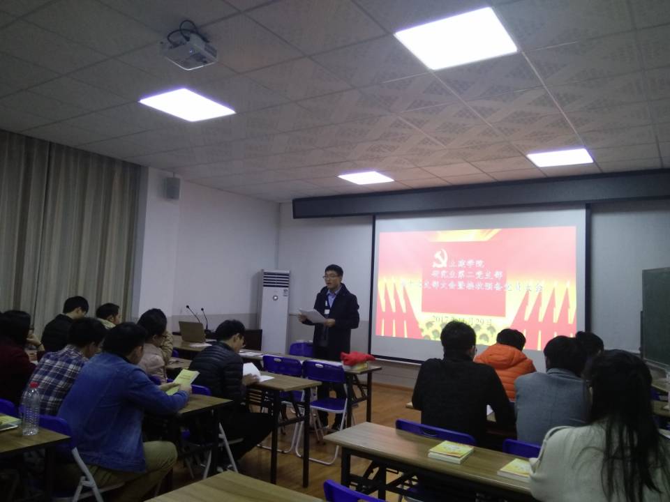 为加强党支部建设,吸纳更多优秀人才,加强党员党建意识,深化学习新党章,11月29日晚7点,研究生第二党支部于4203会议室召开党支部大会暨接收预备党员会议。