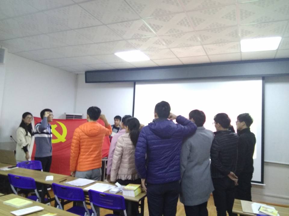 随后,由党支部书记章明明同志带领该7位同志面向党旗进行宣誓;宣传委员陈佳雨组织与会所有同志进行新党章等有关内容的学习,并要求与会同志认真学习,积极分享各自的学习心得。
