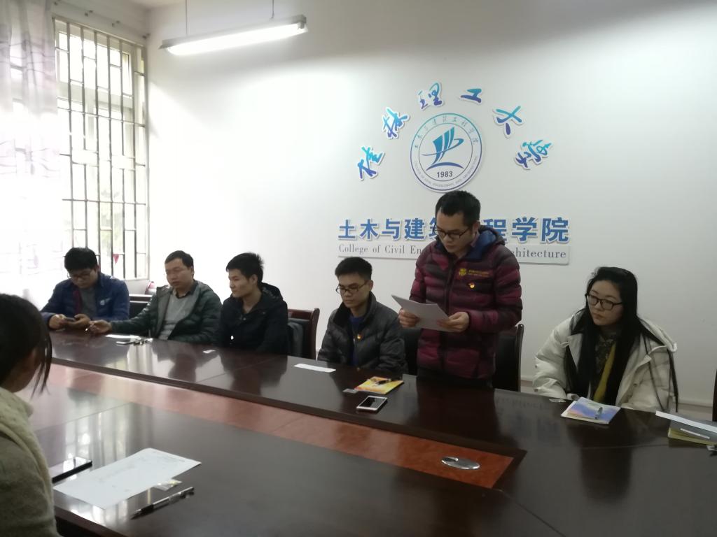 随后,党支部孙书记对2017年度工作进行了详细的总结,指出支部内所存在的问题,要求各党员要不忘初心、牢记使命。最后,孙书记宣读了学院党委下发的关于民主评议党员和考核工作的相关文件,并部署相关年终总结工作。