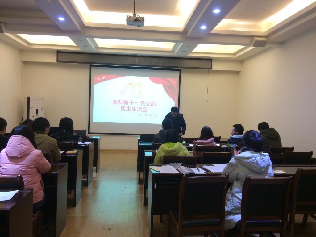 2018年1月9日晚上,学院本科生第十一支部在4204召开2017年度民主生活会,会议由党支部书记唐小胜同志主持,学院党委委员余文成老师和支部全体成员参与此次会议。