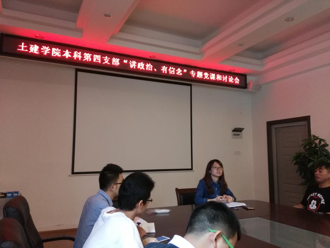 为加强党员服务意识,促进党支部良好风气的形成,我院本科生第四党支部于2016年5月31日上午9点在4216会议室开展“两学一做”学习教育专题学习会议。本次会议主要由两部分内容组成:重温入党誓词、“讲政治、有信念”专题党课以及讨论。此次会议有本四支部书记卢秋玲主持,支部第一书记张芹老师参加会议并作了重要讲话。