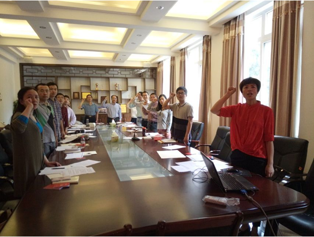 最后,支部全体党员开展了“重温入党誓词”活动,在支部书记宋宇老师的带领下,面向党旗庄严宣誓,重温入党誓词。同志们回顾起入党宣誓时的庄严承诺和坚定决心,受到了一次触动心灵的思想教育,进一步增强了党性意识。