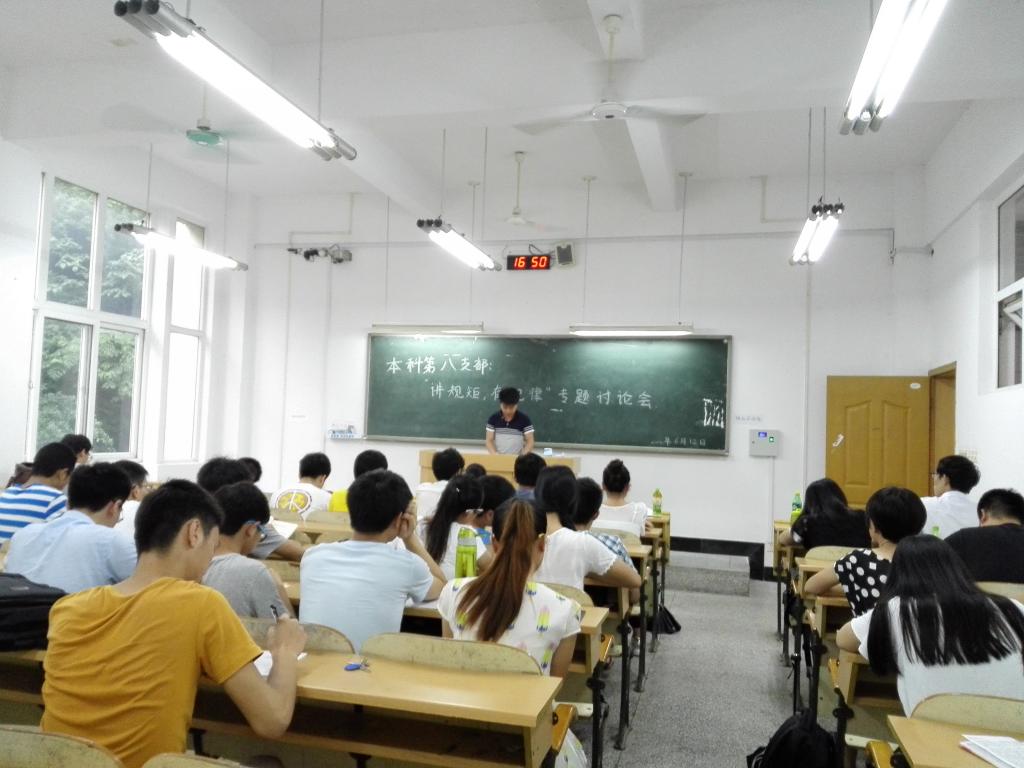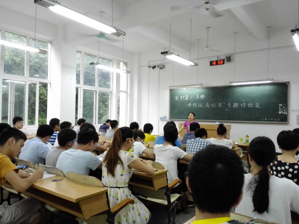 2016年6月12日下午,本科第八党支部在09214召开关于“讲规矩,有纪律”的集中讨论学习会。学习会由支部副书记辛梦颖主持,支部全体党员参加了此次会议。