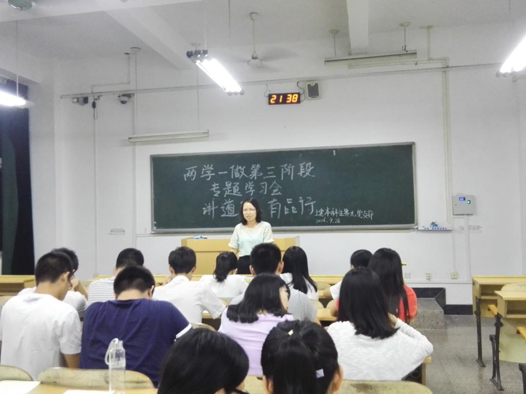 2016年9月28日晚,土建学院本科生第九党支部在9114教室召开两学一做“第三阶段”专题学习会。