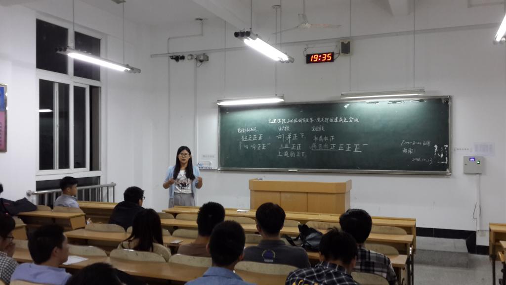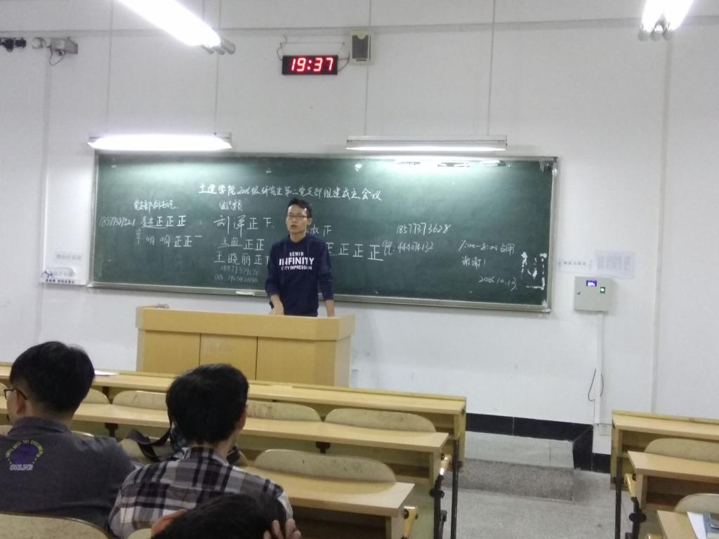 2016年10月13日,桂林理工大学土木与建筑工程学院2016级全体研究生党员于下午7:00—8:00在教9212召开全体大会,组建研究生第二党支部,并召开学习习近平总书记“七一”重要讲话学习会。会议由李杰同志主持。