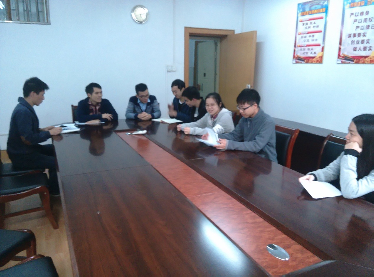 2016年11月20日上午9:00,研究生第四党支部的各位党员们在土建学院4教216开展了以“以新发展理念引领发展——梳理创新、协调、绿色、开放、共享的发展理念”的专题学习活动。该项活动由支部书记韦文俊主持,支部党员牛庚同学撰写并发表演讲,带领支部全体党员同学学习。