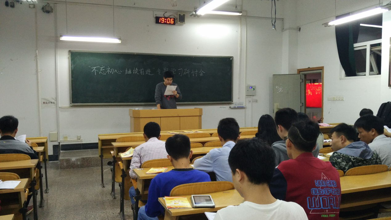 2016年11月17日晚,我们本科第八党支部召开了关于习近平总书记“七一”重要讲话——“不忘初心,继续前进”专题三的学习讨论会。坚持不忘初心、继续前进,就要坚持中国特色社会主义道路自信、理论自信、制度自信、文化自信,坚持党的基本路线不动摇,不断把中国特色社会主义伟大事业推向前进。