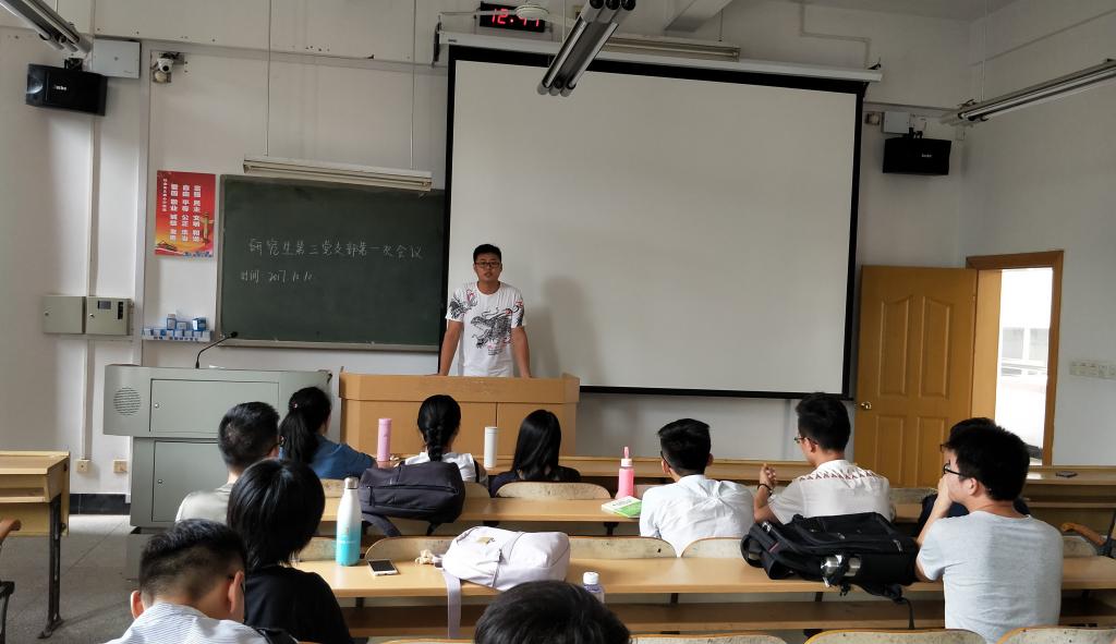 2017年10月10日中午,研究生第三党支部全体党员在9205教室召开了党支部成立以来的第一次会议。会议由党支部书记李文杰同志主持。