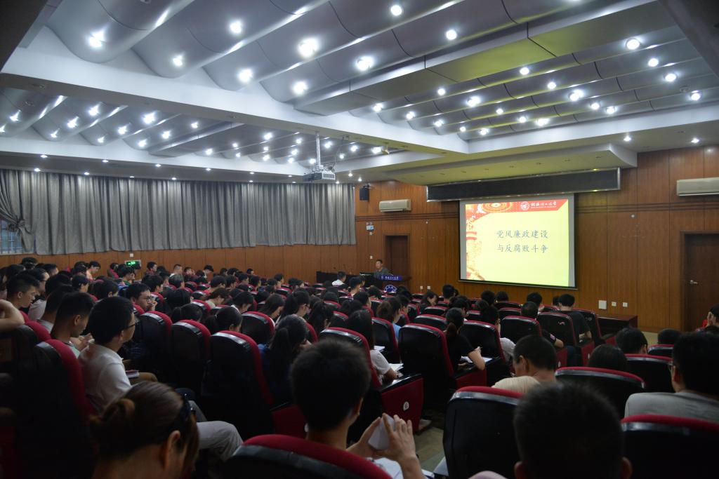 6月27日晚上在屏风校区教九楼9501会议室,学校副处级纪检员、监察室副主任李军朝围绕党风廉政建设和反腐败斗争为全院师生党员上了一堂专题党课。会议由学院党委副书记王盛老师主持。