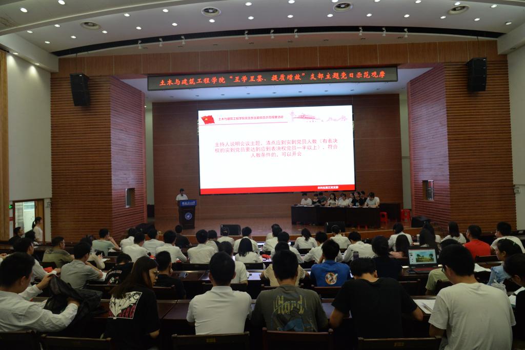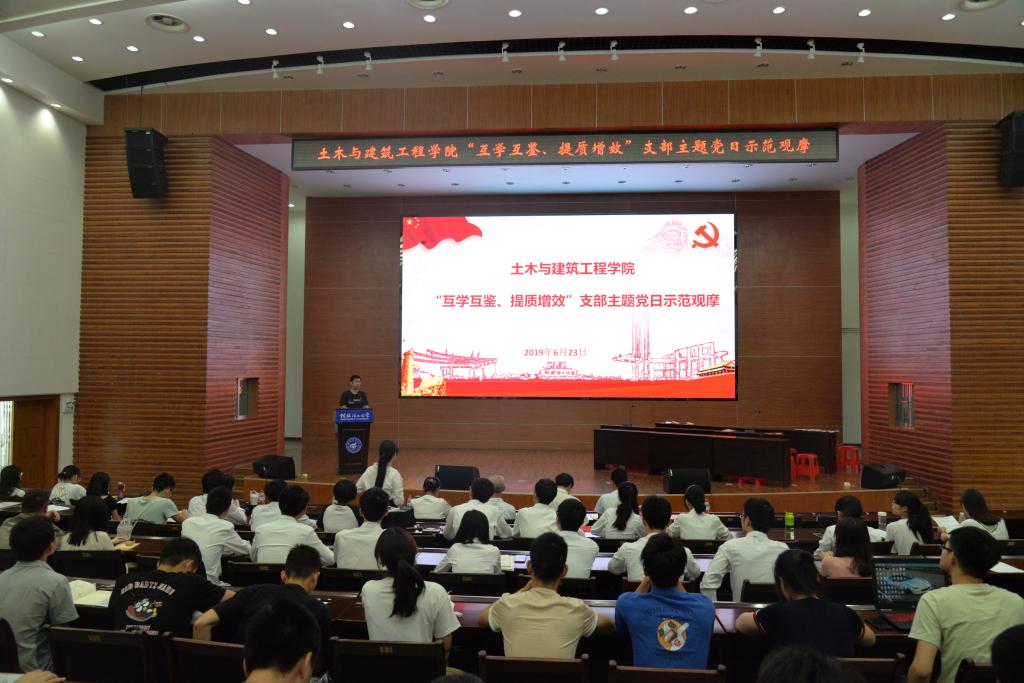 土木与建筑工程学院“互学互鉴、提质增效”党支部主题党日示范观摩活动于2019年6月23日在屏风校区图书馆报告厅成功举办。学院党委书记熊英老师、学校党委组织部副处级组织员梁保熙老师、学院党委副书记王盛老师出席参加了此次活动。活动由学院党建组织员马文硕老师主持。