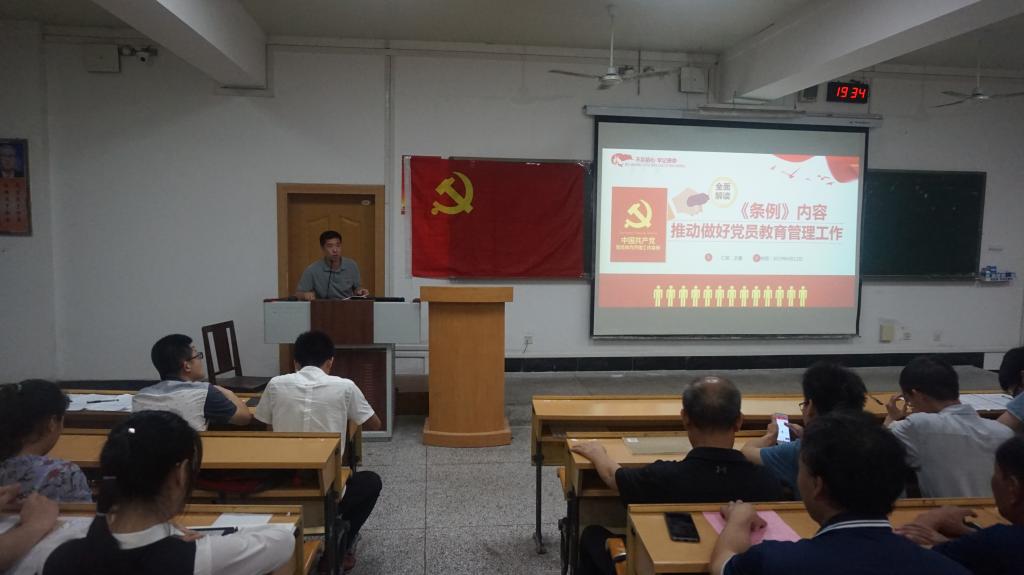 6月13日晚在屏风校区教9楼9201教室,学院党委副书记王盛围绕全面解读《中国共产党党员教育管理工作条例》主题为全院师生党员上了一堂专题党课。