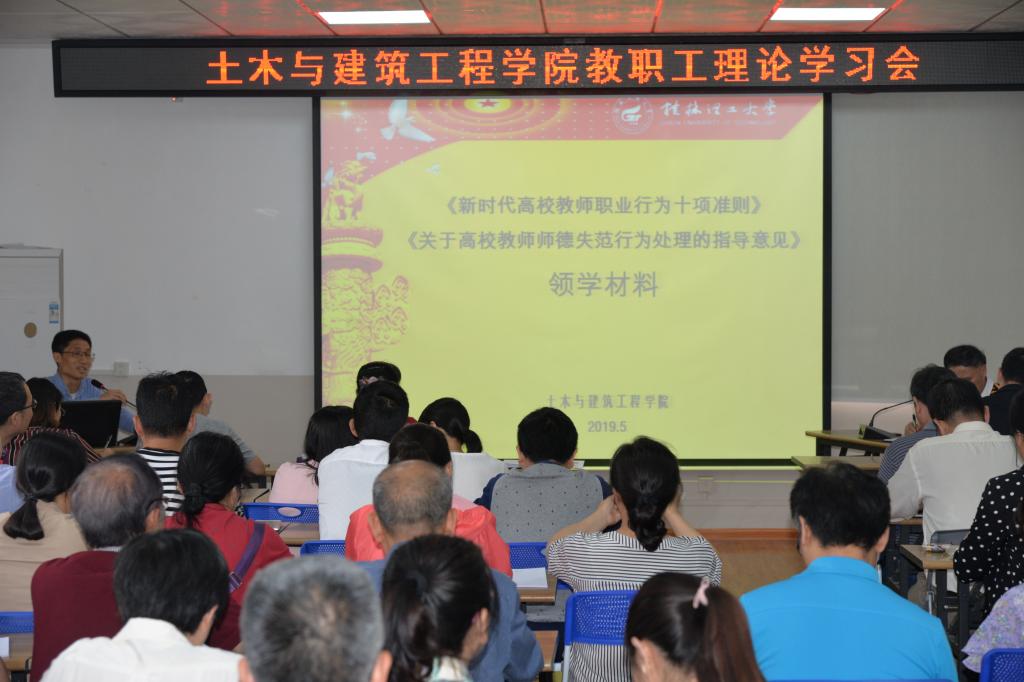 余文成副院长以《加强师德师风建设,培育堪当民族复兴大任的时代新人》为题,重点领学了教育部2018年出台的《新时代高校教师职业行为十项准则》、《关于高校教师师德失范行为处理的指导意见》两个重要文件,他深入讲解了《准则》和《意见》的出台背景、重要意义和主要内容,同时结合教育部今年4月3日在官网公开曝光的4起违反教师职业行为十项准则典型案例进行分析,明确指出全体教职工要认真落实立德树人根本任务,自觉加强师德修养,严格遵守师德规范,强化使命担当,明确师德底线,做有理想信念、有道德情操、有扎实学识、有仁爱之心的好老师。
