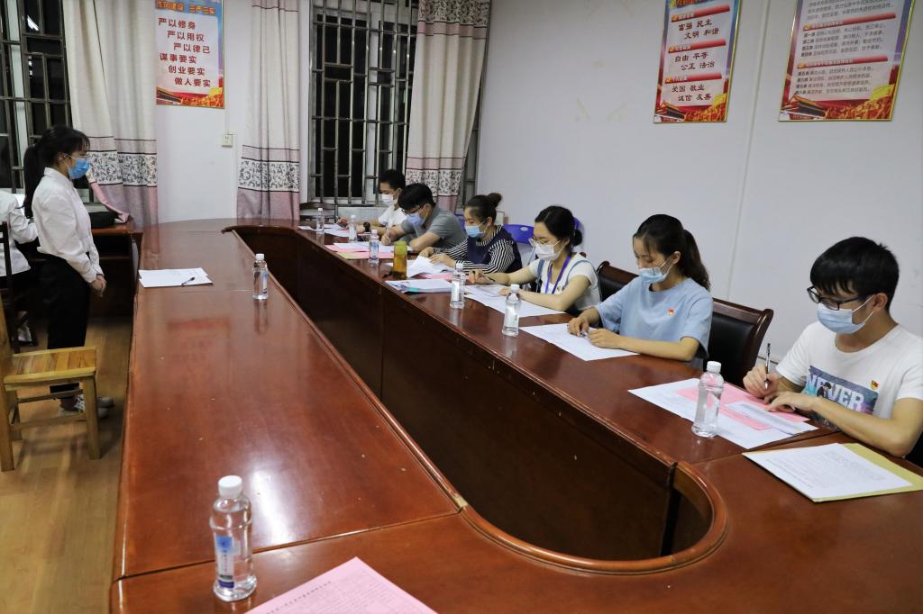 参加此次预审笔试和答辩会的64名入党发展对象意向人由学院各学生党支部推荐,学院党委审核、讨论确定。为了确保此次笔试和答辩会的顺利进行,学院党委成立了预审工作领导小组,学院党委曾榕书记和唐丽华副书记分别担任组长和副组长,并为预审笔试和答辩命题。此外为了保证答辩的公平、公正、公开,学院邀请了党委委员、教师党员、生党员共同担任答辩评委。