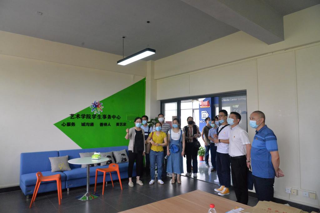 交流之初,艺术学院党委书记白凌婷带领我院党委一行人首先参观了党建工作中心、党员活动室、学生事务中心、易班新媒体中心、艺创空间创新创业基地等场所,实地感受艺术学院“党建+”工作的各种创新之举。