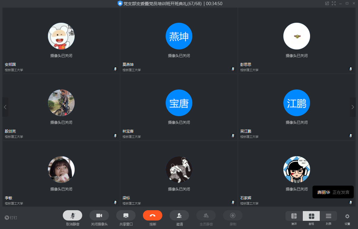 6月4日下午,土木与建筑工程学院分党校利用钉钉视频会议平台举办2020年春季学期党支部支委暨党员培训班开班仪式。学院党委书记曾榕、党委副书记唐丽华及70多名党员代表参加了本次开班仪式。开班仪式由学院党建组织员马文硕主持。