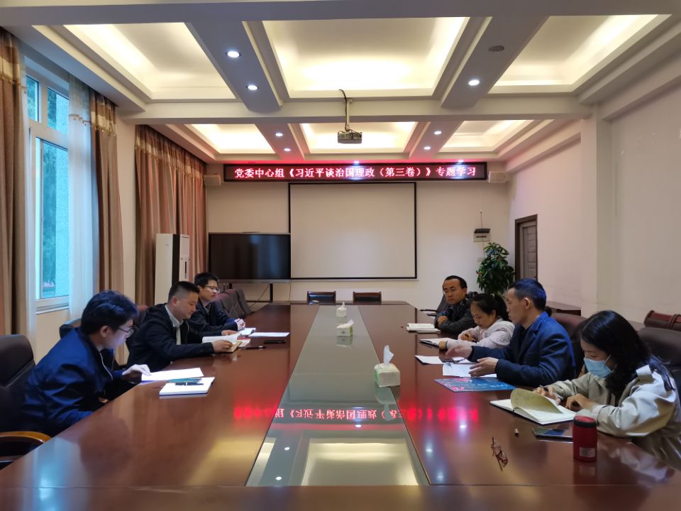 10月19日下午,学院党委书记曾榕在4222会议室主持召开了党委中心组专题学习会,集中学习《习近平谈治国理政》第三卷中关于加强党风廉政建设的重要指示精神,学院党委全体成员、副院长邓春凤、院长助理张研参加理论学习会。