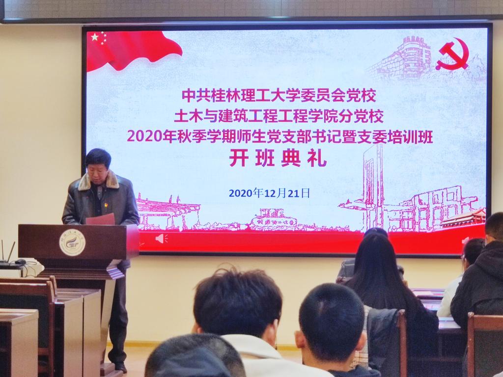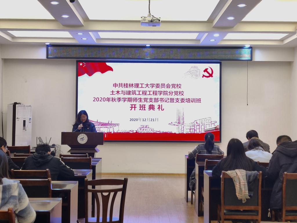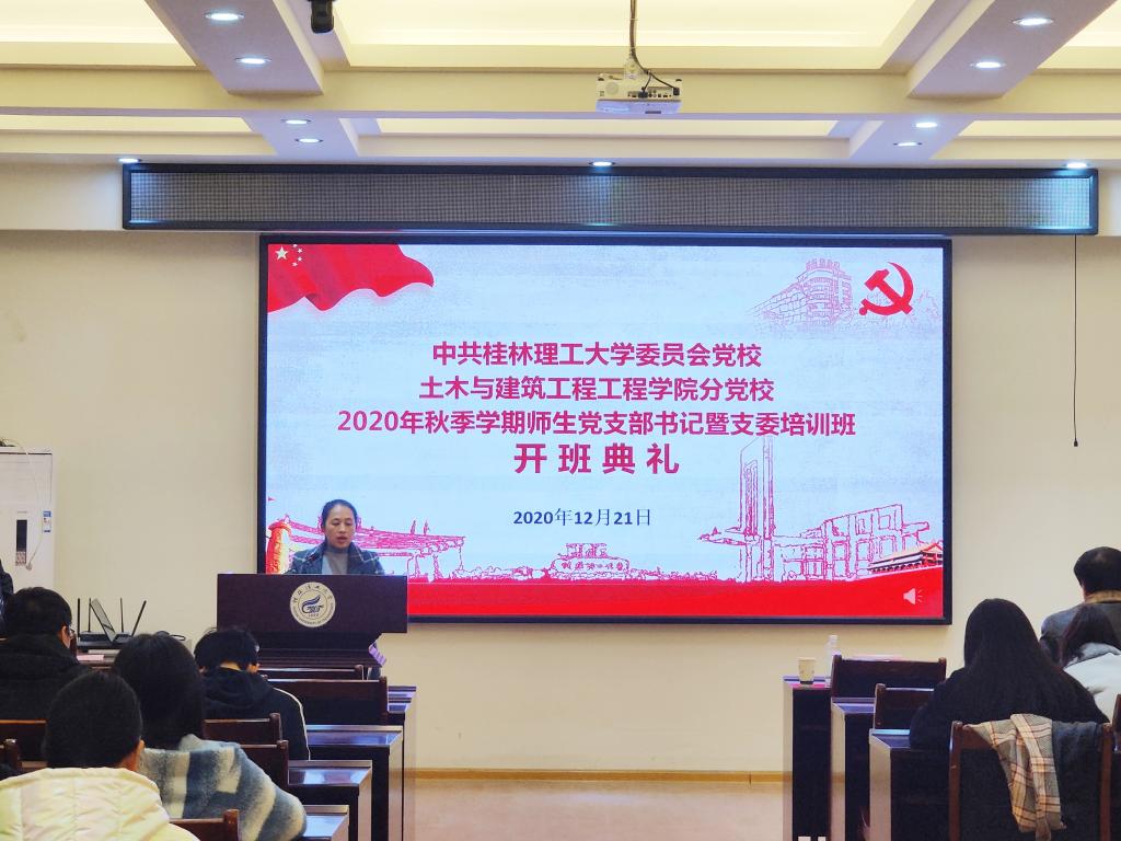 12月21日晚,土木与建筑工程学院2020年秋季学期党支部书记暨支委培训班在屏风校区4204会议室开班。学院党委副书记唐丽华、组织员梁保熙及教工、学生支部支委参加开班典礼,典礼由经玲主持。