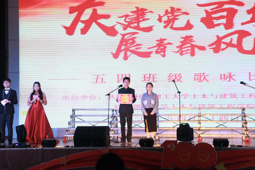 为庆祝中国共产党成立一百周年,弘扬五四爱国精神,丰富学生校园文化活动,增强学生班级的凝聚力和集体荣誉感,土木与建筑工程学院于4月24日在雁山校区体育训练馆举办以“庆建党百年,展青春风采”为主题的五四班级歌咏比赛,2020级学生以班级为单位参加比赛。比赛邀请到学院党委副书记唐丽华老师,各年级辅导员和2020级各班班主任参加活动。