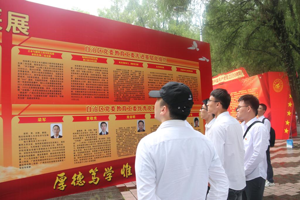 7月1日上午,学院组织师生代表到屏风校区小树林广场,参观学校建党百年“永远跟党走·奋进新时代”基层党建成果展。