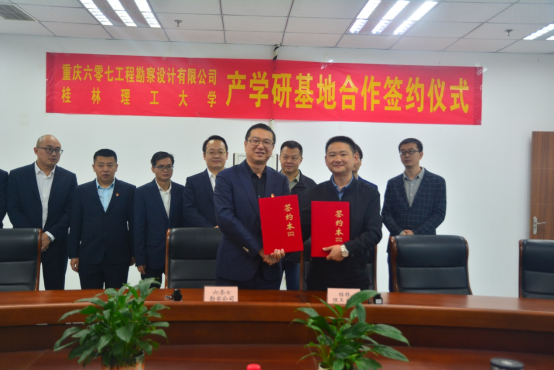 最后,双方代表共同签署了产学研合作协议,并为合作共建的“桂林理工大学产学研合作基地”揭牌。