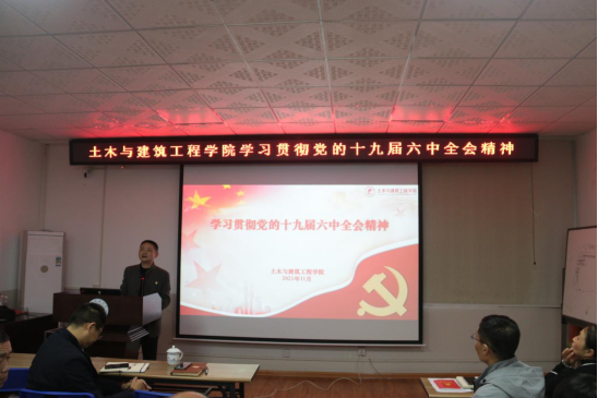 为学习贯彻落实党的十九届六中全会精神,动员和激励广大教师及党员同志切实把思想和行动统一到党中央重大决策部署上来,深入推进党史学习教育和“四史”宣传教育。11月16日下午,学院在4203会议室召开关于党的十九届六中全会精神学习会。会议由学院党委书记曾榕主持,学院全体教职工参加会议。
