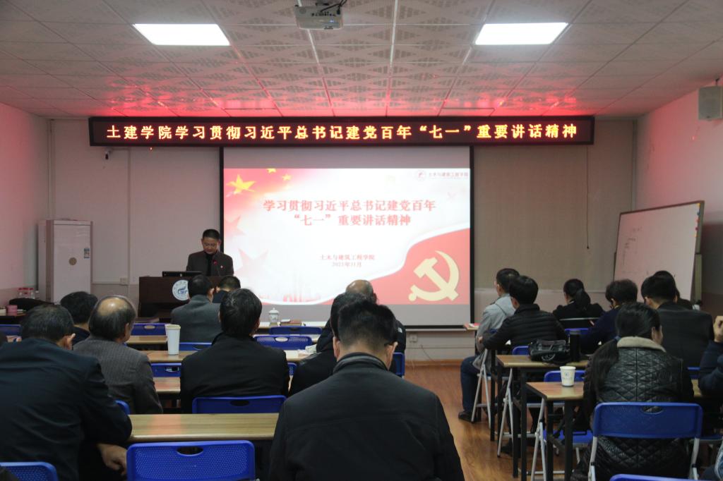 为深入学习贯彻习近平总书记在庆祝中国共产党成立100周年大会上的重要讲话精神。10月26日,学院在4203会议室召开全院学习习近平总书记“七一”重要讲话精神专题学习会。会议由学院党委书记曾榕主持,学院全体教职工参加了此次会议。