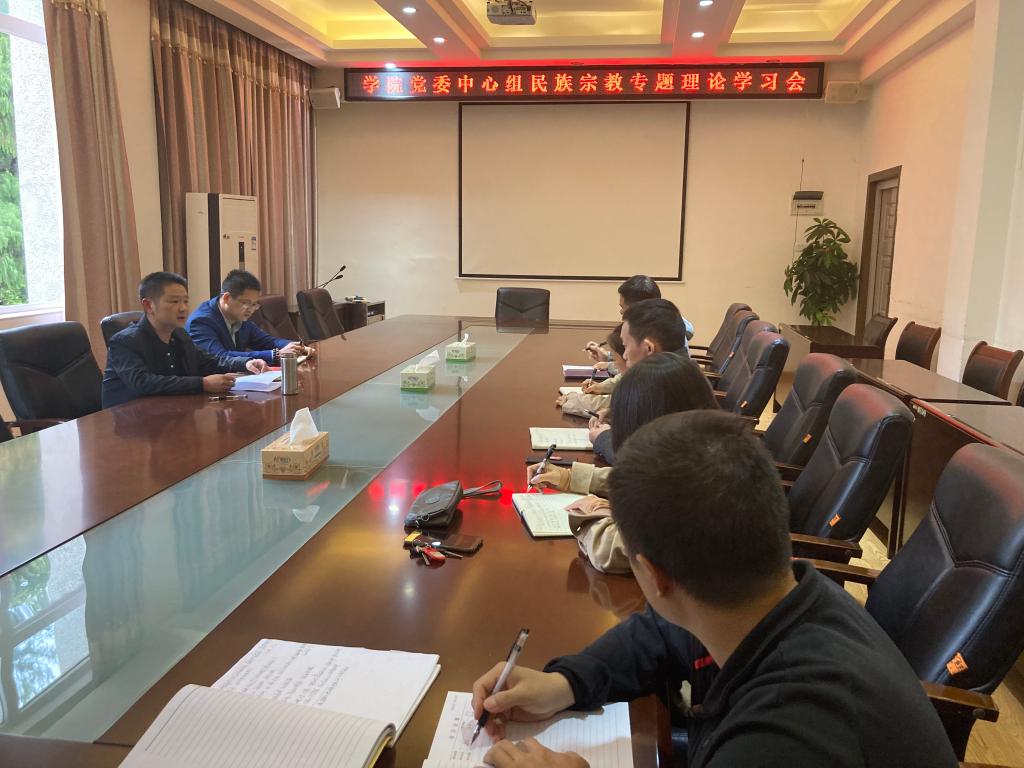 10月12日下午,学院4222会议室召开了党委中心组民族宗教专题理论学习会,会议由学院党委书记曾榕主持,学院党委全体成员、副院长邓春凤参加会议。