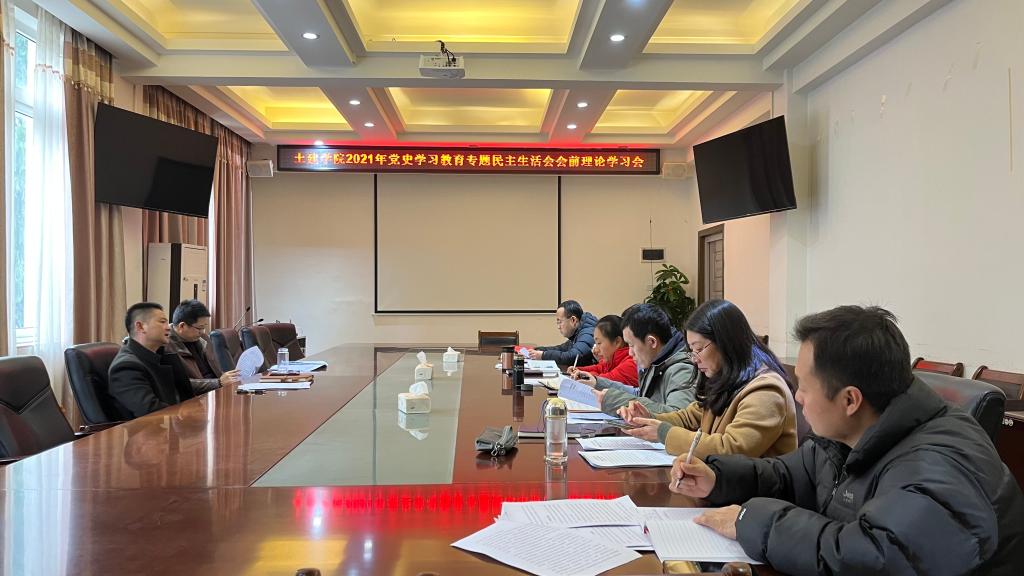 1月13日下午在4222会议室开展2021年度党史学习教育专题民主生活会会前理论学习会,学院党委委员集中学习研讨,学习会由党委书记曾榕主持。