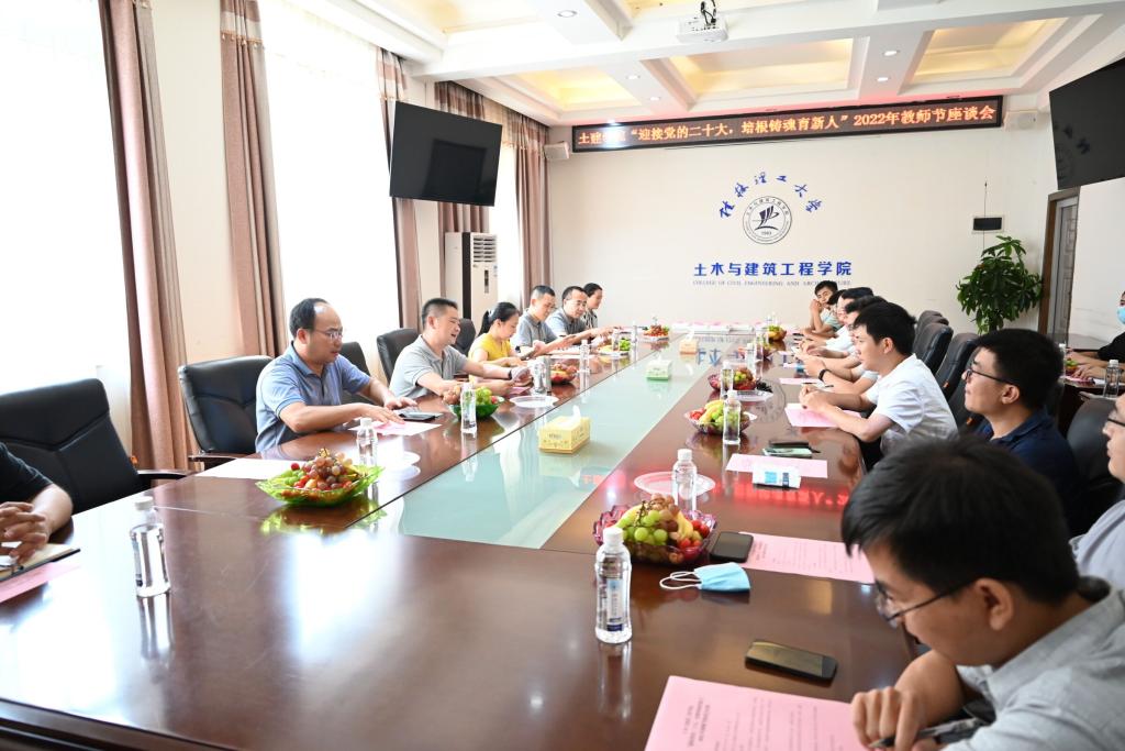 9月9日下午,学院党委于4222会议室召开“迎接党的二十大,培根铸魂育新人”2022年教师节座谈会,学院党委书记曾榕、学院党委副书记唐丽华、学院副院长虞爱平、院长助理张研、先进教师党员代表、学院青年教师和新进教师及研究生党支部党员代表参加本次座谈会。由学院党委副书记唐丽华主持。