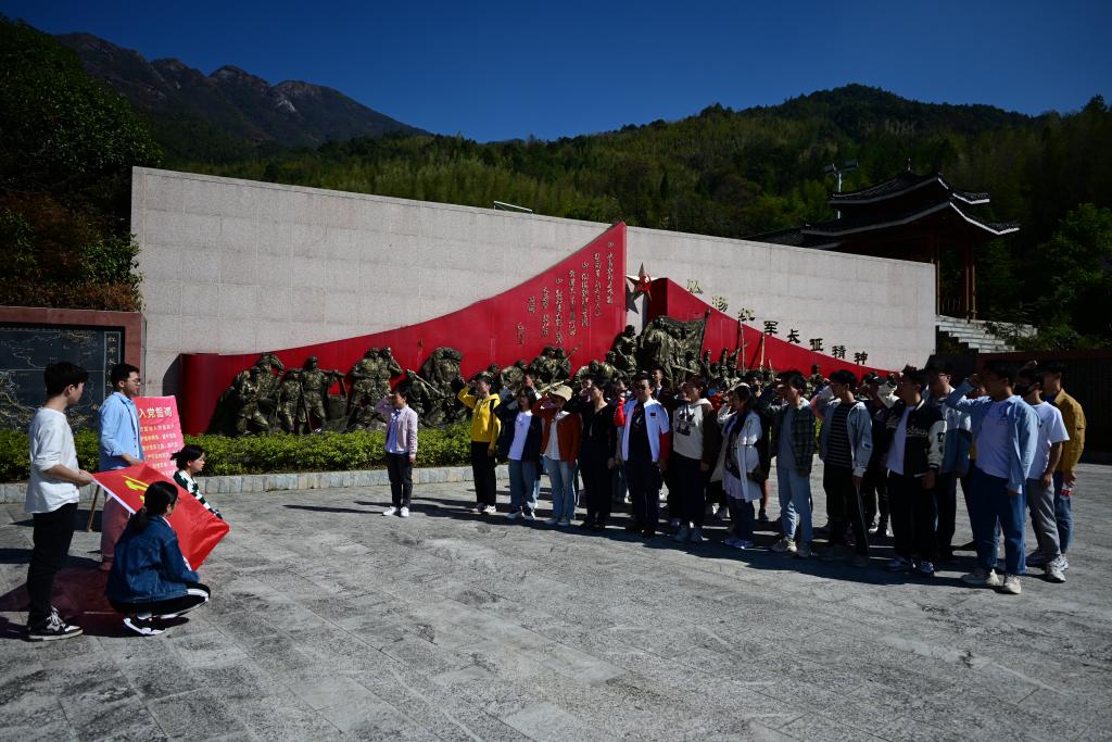 陈列馆参观结束后,党员们来到红军长征翻越老山界廉政教育基地,在石刻雕像下重温入党誓词。学院党委副书记唐丽华同志做了现场微党课,教育引导师生党员要铭记光辉历史、强化使命担当,深刻理解长征精神是我们党的优良传统和宝贵财富,尤其纪律严明、廉洁奉公的精神是保持党与人民群众紧密联系的重要法宝,是抵制腐败的有力武器。