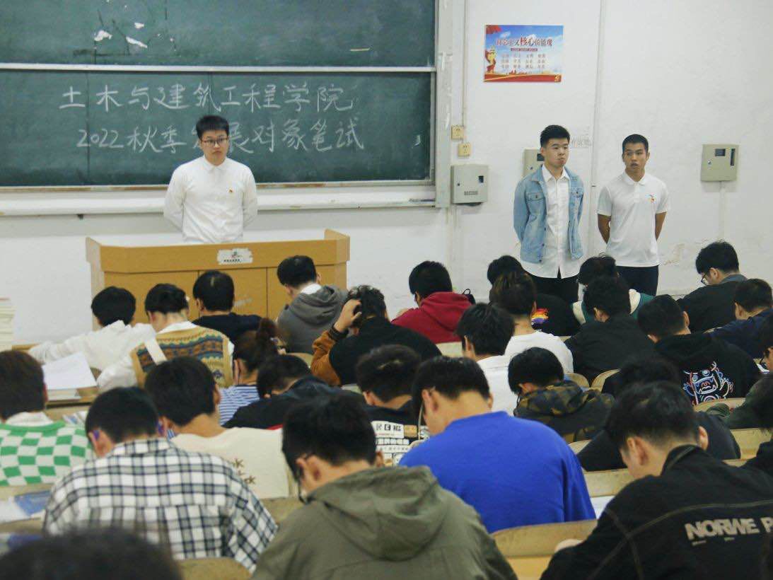 为进一步扩大我院学生党员队伍、严把学生党员发展的入口关。2022年11月5日,土木与建筑工程学院在屏风校区教二栋、教四栋开展入党发展对象遴选工作,学院各党支部委员和学院学生党务中心全体成员参加本次活动。