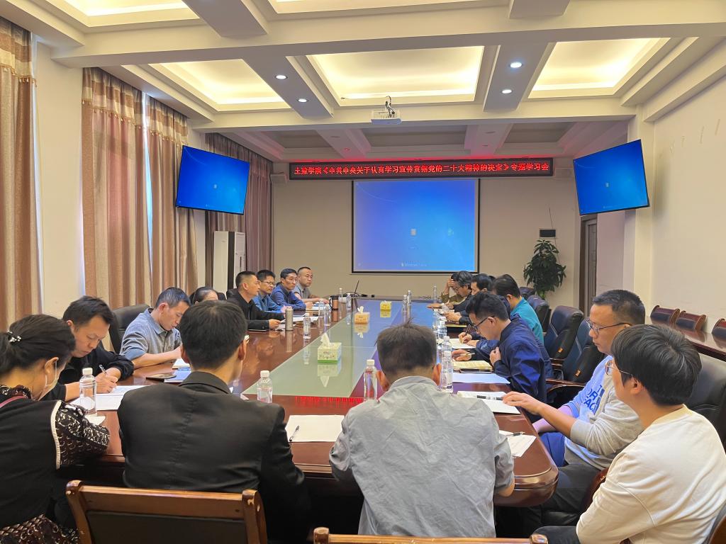 为深入学习宣传贯彻党的二十大精神,落实中共中央要求决定,11月8日下午,学院党委召开《中共中央关于认真学习宣传贯彻党的二十大精神的决定》专题学习会。会议由学院党委书记曾榕同志主持,学院党委成员、各部门、教研室负责人参加会议。