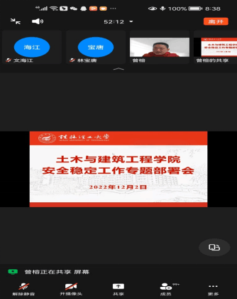 12月2日晚上,学院党委召开线上钉钉安全稳定工作专题部署会,传达学习上级精神,部署学院维护安全稳定工作。会议由学院党委书记曾榕主持。全院教职工参加了会议。