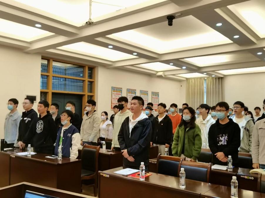 活动第一项议程是全体起立共唱国歌;第二项议程为党史知识竞赛,各个支部派出四位党员作为代表进行问题抢答,通过此方式来检验学生党员党的理论知识储备,并加强同学们党的理论知识学习;第三项议程为观看视频奏唱国际歌;最后大家进行合影留念。