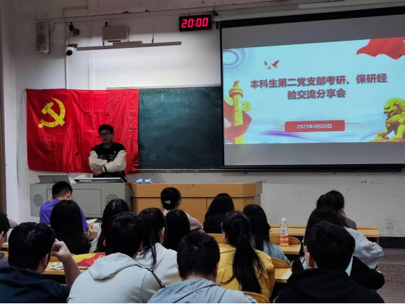 4月26日晚,本科生第二党支部于屏风9108教室开展了优秀学长学姐考研、保研经验交流分享会,活动由支部副书记刘岩主持,支部全体党员参加。