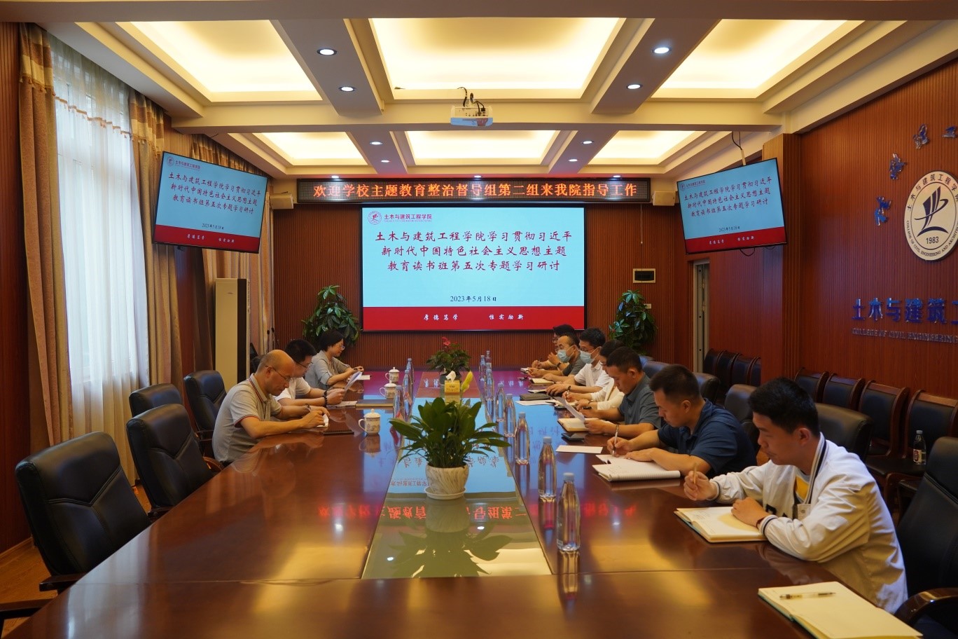 5月18日,学院在4222会议室组织开展学习贯彻习近平新时代中国特色社会主义思想主题教育读书班第五次专题学习研讨。会议由学院党委副书记、院长钱凯主持,学校党委主题教育整治督导组第二组组长张雄、组员杨微梅,学院领导班子、党委委员参加会议。