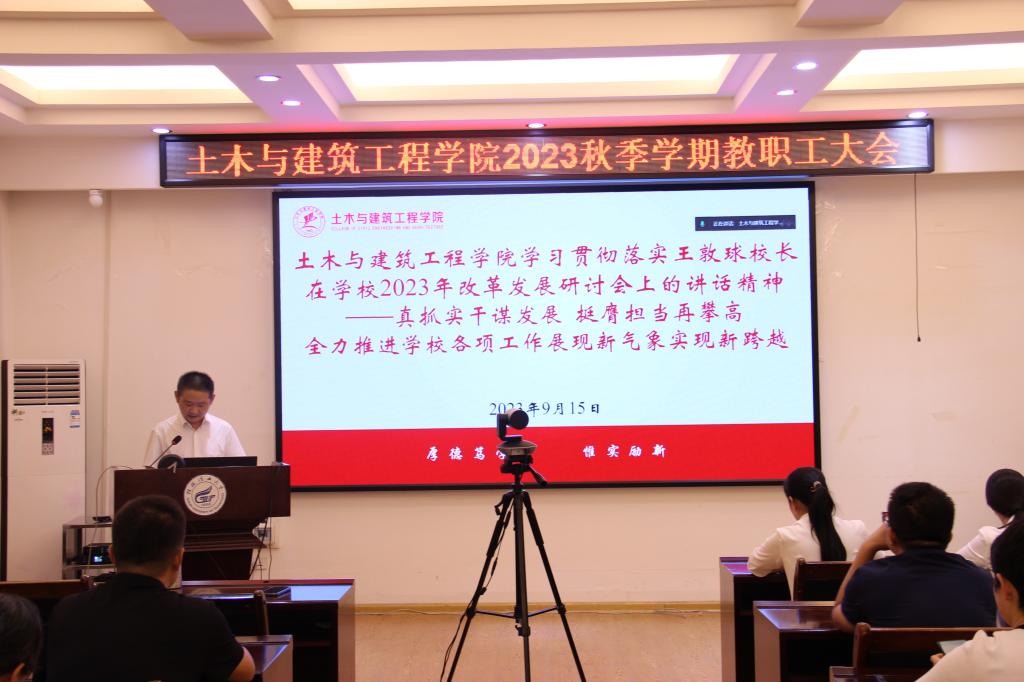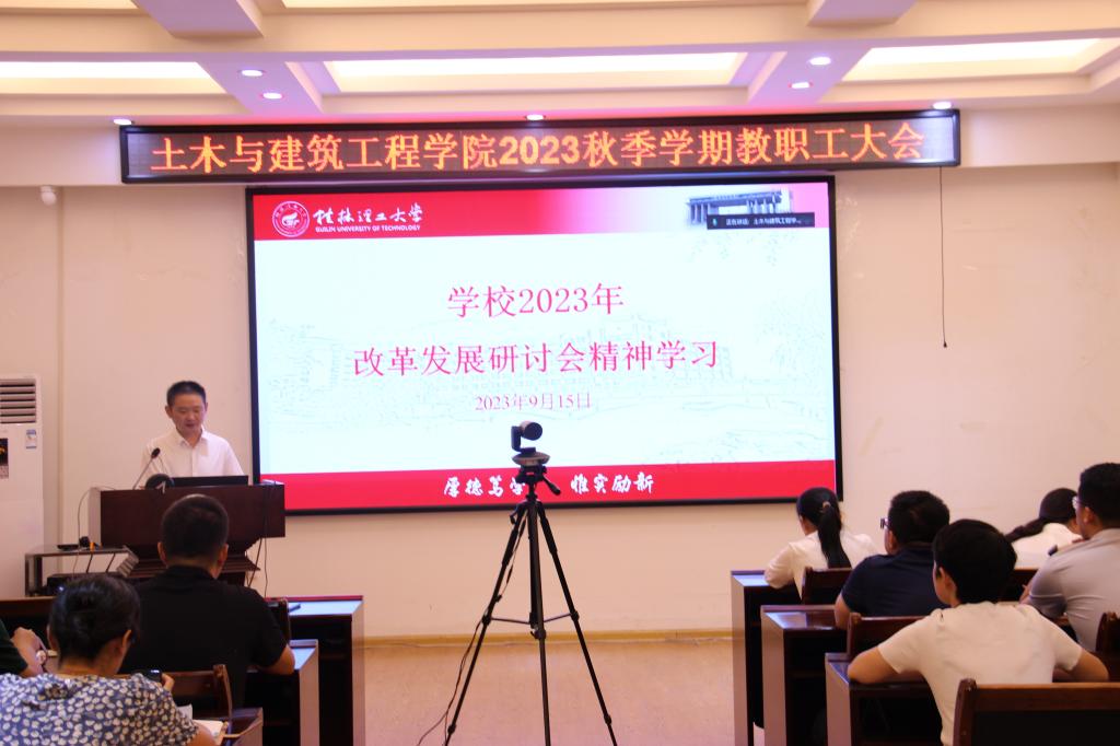 9月15日下午,学院在4204、4203会议室召开全院教职工理论学习会,专题学习贯彻学校2023年改革发展研讨会精神。会议由学院党委书记曾榕主持,学院领导班子、党委委员,学院全体教职工参加会议。
