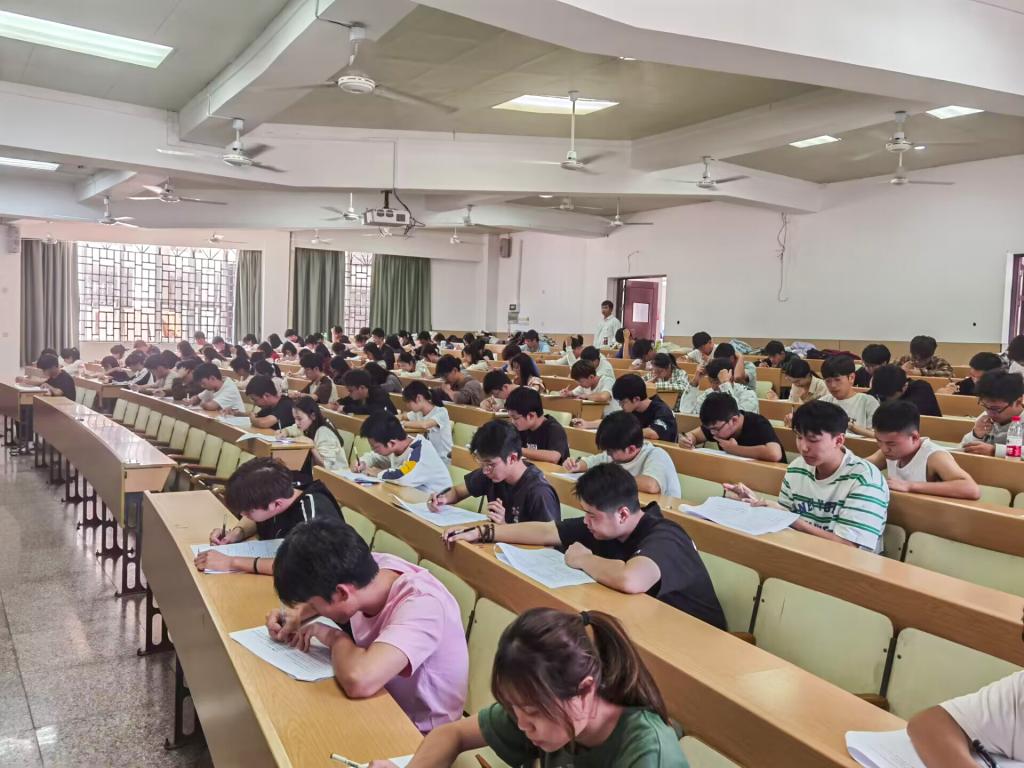 考试开始前,监考老师对考场纪律提出要求,希望同学们做到诚信考试。本次考试秉持公平、公正、公开的原则,以闭卷考试的形式进行,全面考察入党积极分子对于《中国共产党章程》、党的二十大精神、中国共产党党史等相关内容的学习掌握情况。在考试过程中,同学们严守考场纪律、认真作答,展现了大学生良好的精神风貌。