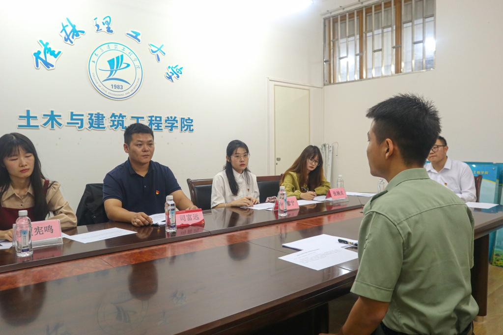 面试于11月3日晚上开展,由各党支部书记、支委组成的评委组对入党积极分子进行面试。主要分为自我展示与现场答题两个环节。