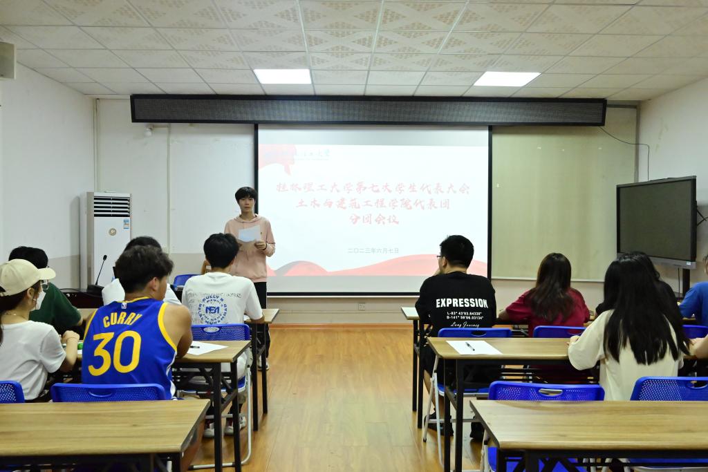 为配合学校顺利召开第六届学生代表大会,6月7日19:30桂林理工大学第七届学生代表大会土木与建筑工程学院2021级、2022级代表于屏风校区4203教室召开分团会议,本次分团会议由许承辉同学和苏厚鸣同学主持。