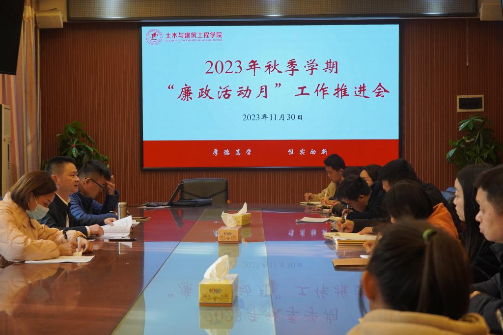 为加强党风廉政建设,扎实推进学校2023年秋季学期“廉政教育活动月”和清廉学院建设各项部署,11月30日,我院在04222会议室召开了2023年秋季学期“廉政教育活动月”暨清廉学院建设工作推进会,学院党委副书记、纪委书记徐时,学院党委委员及各党支部书记参会,会议由学院党委书记曾榕主持。