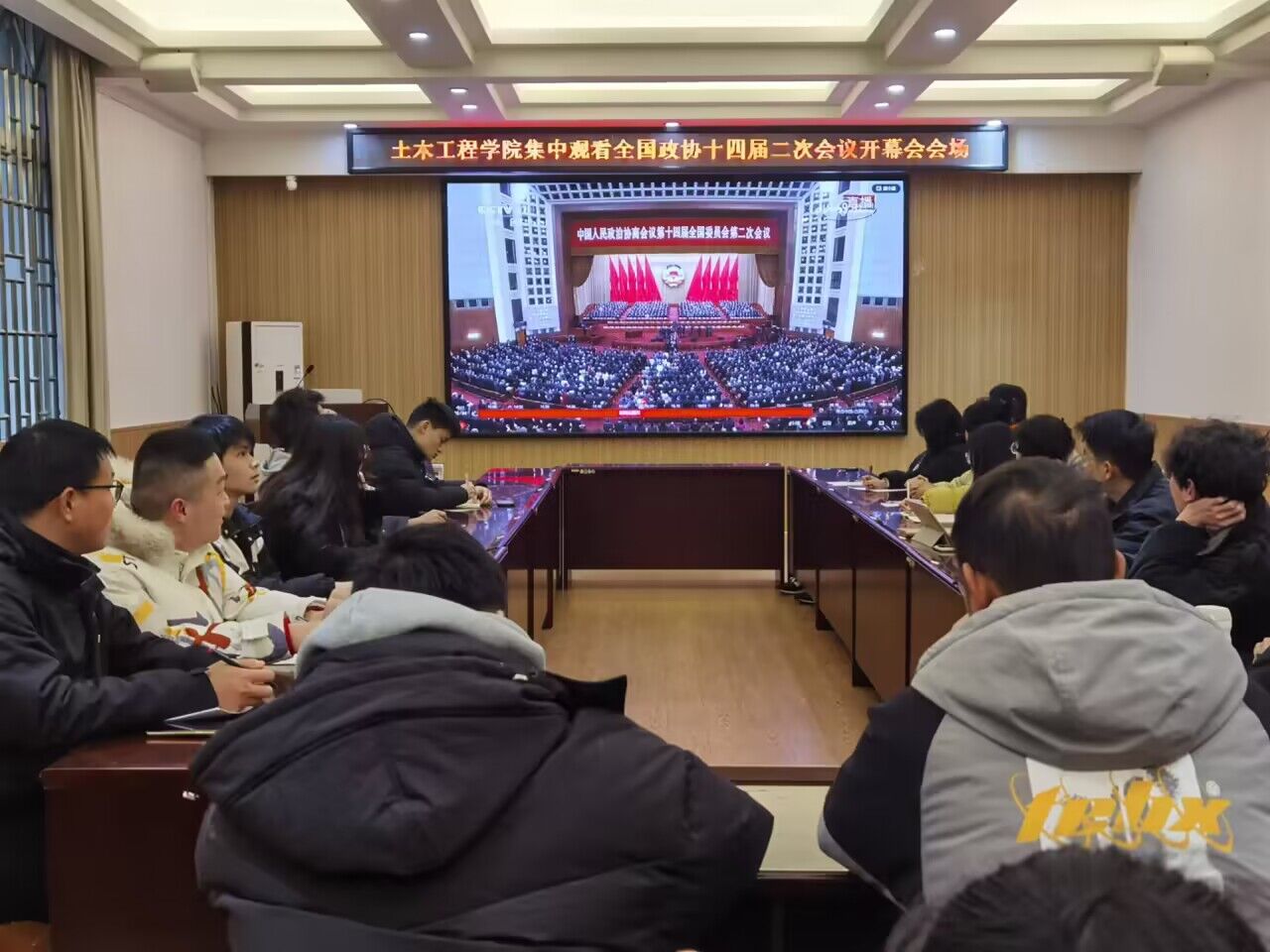集中观看全国政协十四届二次会议开幕会会场